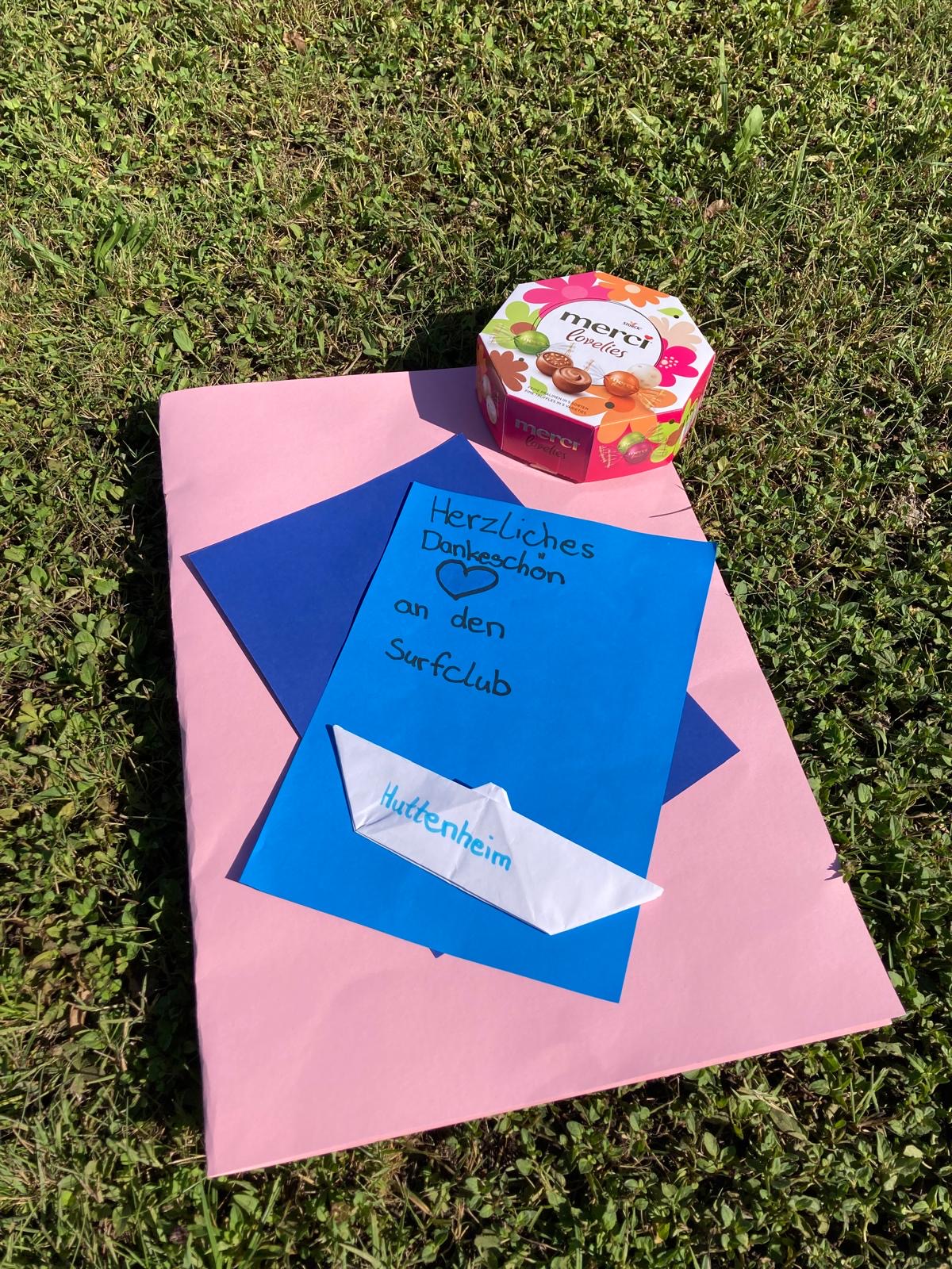 Die Lehrerinnen, die Schulsozialarbeiterin und die Schülerinnen und Schüler bedankten sich bei den Begleitern des Surfclubs mit einem Riesen-Applaus und überreichten als kleines Dankeschön eine selbstgebastelte Karte an Michael. Wir bedanken uns sehr und sind froh, dazu beigetragen zu haben, Kindern die Angst vor dem Wasser zu nehmen.